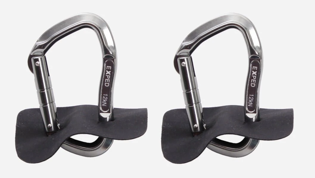 Ingenious karabiners with drip shield. These allow hammocks to be suspended easily and quickly. Ideal in combination with our Slit Lines. The Drip Shields prevent rain from running along the suspension line into the hammock.